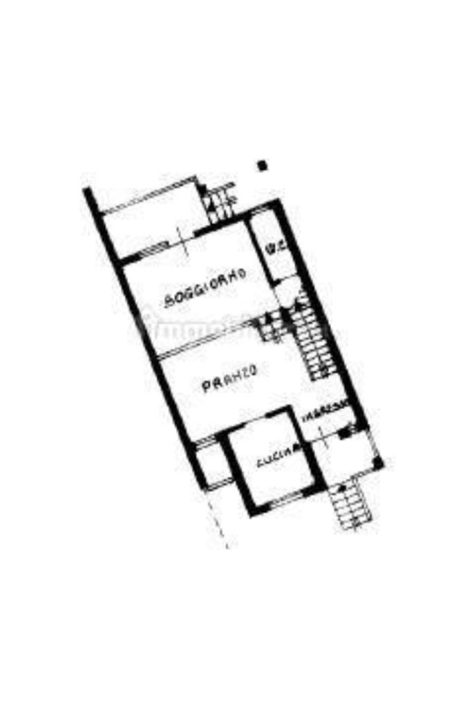 Il secondo piano da ristrutturare è composto da una cucina separata dal salotto, una camera da letto e un bagno finestrato.